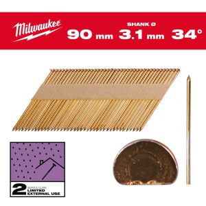 13. Milwaukee 7,4 x 3,1 x 90 mm, Glattschaft Stahl verzinkt, 34° D-Kopf-Nägel für M18FFN