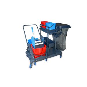 59. Plock Reinigungswagen mit 2 x 5 l und 2 x 18 l Eimer ,Moppresse,Mophalterung+Ablage,Utensilbehälter,