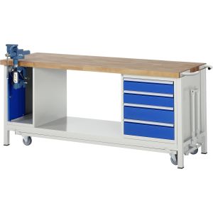60. RAU Werkbank mit Fahrgestell 8162, B2000xT700xH880mm, 4xSchublade-TA