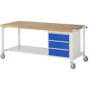 31. RAU Fahrbare Werkbank 8569, B2000xT900xH880-1080mm, 3xSchublade-VA, 2xTüren