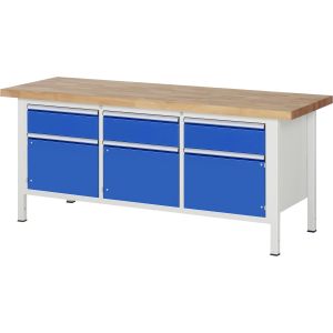 1. RAU Werkbank 8569I2, B2000xT700xH840mm, 3xSchublade-TA, 2xTür