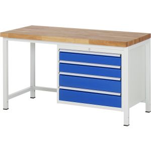 53. RAU Werkbank höhenverstellbar 8262A1, B1500xT900xH840-1040mm, 4xSchublade-VA