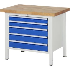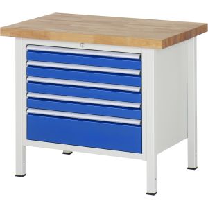 4. RAU Fahrbare Werkbank 8271, B1000xT700xH880-1080mm, 5xSchublade-TA