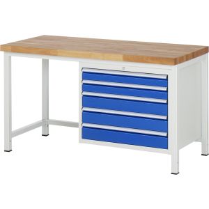 45. RAU Werkbank höhenverstellbar 8268A1, B1500xT900xH840-1040mm, 5xSchublade-VA
