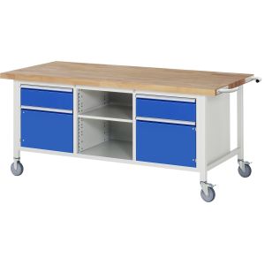 60. RAU Werkbank mit Fahrgestell 8561I2, B2000xT700xH880mm, 2xSchublade-TA, 2xTür