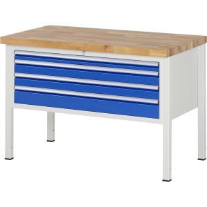 32. RAU Werkbank höhenverstellbar 8333A2, B1250xT700xH840-1040mm, 4xSchublade-VA