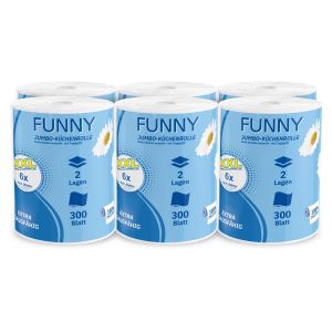 24. Plock Jumbo-Küchenrolle 2-lagig, 300 Blatt ,Zellstoff weiß, 6 Rollen