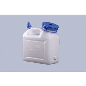 53. Hünersdorff Wasserkanister ECO 6 L mit Rohr, HD-PE natur, mit blauem Zubehör