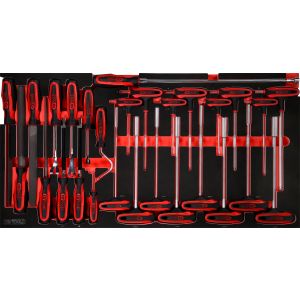 45. KS TOOLS T-Griff-Winkelstiftschlüssel- / und Feilen-Satz in Schaumstoffeinlage, 28-tlg