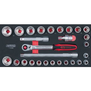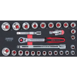 38. KS TOOLS SCS Steckschlüssel-Satz, 28-tlg in 1/3 Systemeinlage