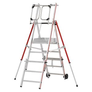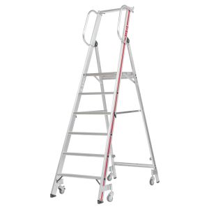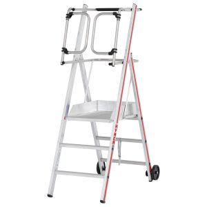 49. Hymer Stufenstehleiter mit Plattform und Rollen, einseitig begehbar