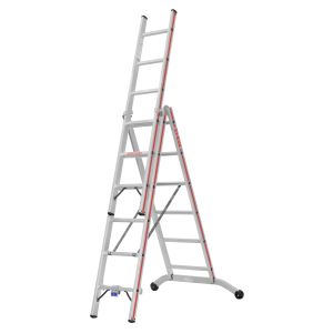 7. Hymer Stufenstehleiter mit Rollen, beidseitig begehbar