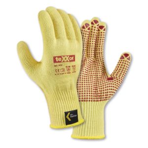 6. BIG Arbeitsschutz teXXor® Mittelstrick-Handschuhe ARAMID mit Noppen - goldgelb/rote Noppen - Größe: 10