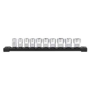 37. Milwaukee 6-kant metrisch, 10-teilig auf Schiene Steckschlüsseleinsatz 3/8" lang Set