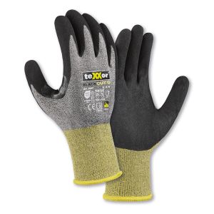 24. BIG Arbeitsschutz teXXor® Schnittschutz-Strickhandschuhe CUT D - grau-meliert/gelb/schwarz - Größe: 6