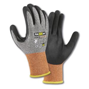 18. BIG Arbeitsschutz teXXor® Schnittschutz-Strickhandschuhe CUT D - grau-meliert/gelb/schwarz - Größe: 12