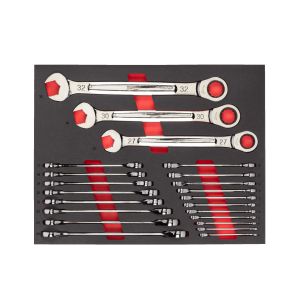 27. Milwaukee 22-teilige Einlage für Werkstattwagen 78 cm MAX BITE Ratschen-Ringmaulschlüssel Einlage