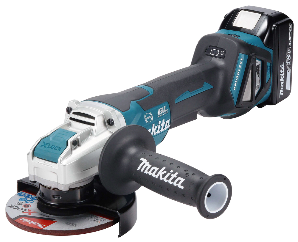 Leistungsfähiger Winkelschleifer mit bürstenlosem Motor und einstellbarer Drehzahl zum Trennen und Schleifen. Mit Paddelschalter.
