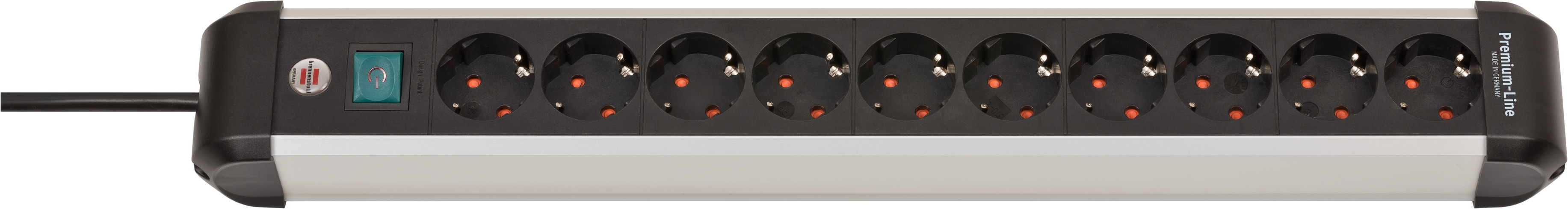 Brennenstuhl Premium-Alu-Line Steckdosenleiste 10-fach / Steckerleiste aus hochwertigem Aluminium (Mehrfachsteckdose mit Schalter und 3m Kabel, Made in Germany)