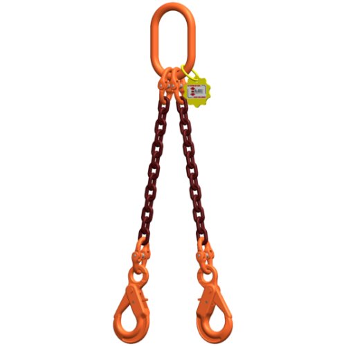 McBULL® 2-Strang-Kettengehänge nach EN 818-4 (mit höherer Tragfähigkeit), Güteklasse 10, mit PAS-Kette, 10 mm, Grundpreis 1 Meter Nutzlänge, Tragfähigkeit 0-45°=5600 kg / 45-60°=4000 kg,oben mit Standard-Aufhängering und am Ende mit Self-Locking-Haken mit Öse - ACHTUNG: Dies ist der Artikel für eine Nutzlänge von 1 Meter. Bei Bedarf von einer anderen Nutzlänge muss der Artikel -HPX210SLMEHR- je weiteren Meter dazubestellt werden. Falls eine Verkürzung benötigt wird, muss der Artikel -HPX210SLVKKS, HPX210SLVKHG oder HPX210SLVKHÖ- je Verkürzungseinheit dazubestellt werden.