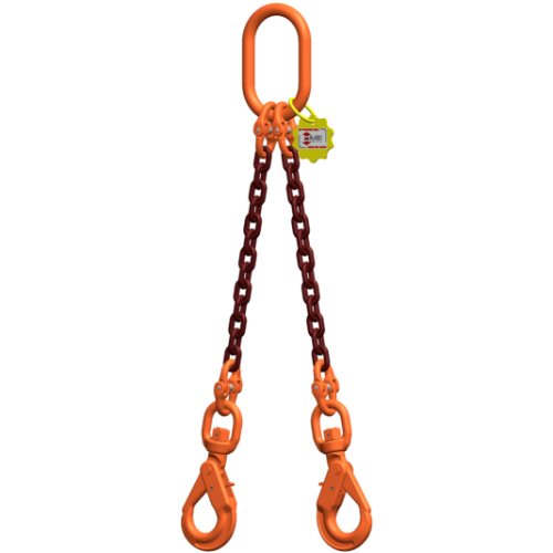 McBULL® 2-Strang-Kettengehänge nach EN 818-4 (mit höherer Tragfähigkeit), Güteklasse 10, mit PAS-Kette, 10 mm, Grundpreis 1 Meter Nutzlänge, Tragfähigkeit 0-45°=5600 kg / 45-60°=4000 kg,oben mit Standard-Aufhängering und am Ende mit Self-Locking-Haken mit Wirbel - ACHTUNG: Dies ist der Artikel für eine Nutzlänge von 1 Meter. Bei Bedarf von einer anderen Nutzlänge muss der Artikel -HPX210SLMEHR- je weiteren Meter dazubestellt werden. Falls eine Verkürzung benötigt wird, muss der Artikel -HPX210SLVKKS, HPX210SLVKHG oder HPX210SLVKHÖ- je Verkürzungseinheit dazubestellt werden.