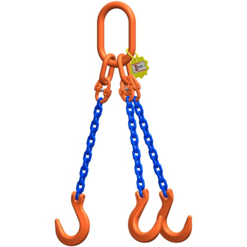 McBULL® 3-Strang-Kettengehänge nach EN 818-4 (mit höherer Tragfähigkeit), Güteklasse 10, mit Sondergüte-Kette, 7 mm, Grundpreis 1 Meter Nutzlänge, Tragfähigkeit 0-45°=4000 kg / 45-60°=2950 kg,oben mit Sonder-Aufhängering (340x180mm) und am Ende mit Giessereihaken mit Gabelkopf - ACHTUNG: Dies ist der Artikel für eine Nutzlänge von 1 Meter. Bei Bedarf von einer anderen Nutzlänge muss der Artikel -HX37SLMEHR- je weiteren Meter dazubestellt werden. Falls eine Verkürzung benötigt wird, muss der Artikel -HX37SLVKKS, HX37SLVKHG oder HX37SLVKHÖ- je Verkürzungseinheit dazubestellt werden.