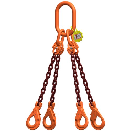 McBULL® 4-Strang-Kettengehänge nach EN 818-4 (mit höherer Tragfähigkeit), Güteklasse 10, mit PAS-Kette, 7 mm, Grundpreis 1 Meter Nutzlänge, Tragfähigkeit 0-45°=4000 kg / 45-60°=2950 kg,oben mit Standard-Aufhängering und am Ende mit Self-Locking-Gabelkopf-Lasthaken - ACHTUNG: Dies ist der Artikel für eine Nutzlänge von 1 Meter. Bei Bedarf von einer anderen Nutzlänge muss der Artikel -HPX47SLMEHR- je weiteren Meter dazubestellt werden. Falls eine Verkürzung benötigt wird, muss der Artikel -HPX47SLVKKS, HPX47SLVKHG oder HPX47SLVKHÖ- je Verkürzungseinheit dazubestellt werden.