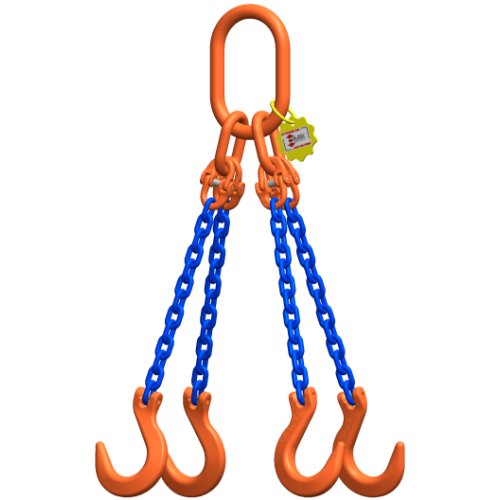 McBULL® 4-Strang-Kettengehänge nach EN 818-4 (mit höherer Tragfähigkeit), Güteklasse 10, mit Sondergüte-Kette, 7 mm, Grundpreis 1 Meter Nutzlänge, Tragfähigkeit 0-45°=4000 kg / 45-60°=2950 kg,oben mit Sonder-Aufhängering (340x180mm) und am Ende mit Giessereihaken mit Gabelkopf - ACHTUNG: Dies ist der Artikel für eine Nutzlänge von 1 Meter. Bei Bedarf von einer anderen Nutzlänge muss der Artikel -HX47SLMEHR- je weiteren Meter dazubestellt werden. Falls eine Verkürzung benötigt wird, muss der Artikel -HX47SLVKKS, HX47SLVKHG oder HX47SLVKHÖ- je Verkürzungseinheit dazubestellt werden.