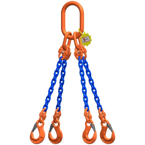 McBULL® 4-Strang-Kettengehänge nach EN 818-4 (mit höherer Tragfähigkeit), Güteklasse 10, mit Sondergüte-Kette, 7 mm, Grundpreis 1 Meter Nutzlänge, Tragfähigkeit 0-45°=4000 kg / 45-60°=2950 kg,oben mit Standard-Aufhängering und am Ende mit Ösenlasthaken - ACHTUNG: Dies ist der Artikel für eine Nutzlänge von 1 Meter. Bei Bedarf von einer anderen Nutzlänge muss der Artikel -HX47SLMEHR- je weiteren Meter dazubestellt werden. Falls eine Verkürzung benötigt wird, muss der Artikel -HX47SLVKKS, HX47SLVKHG oder HX47SLVKHÖ- je Verkürzungseinheit dazubestellt werden.