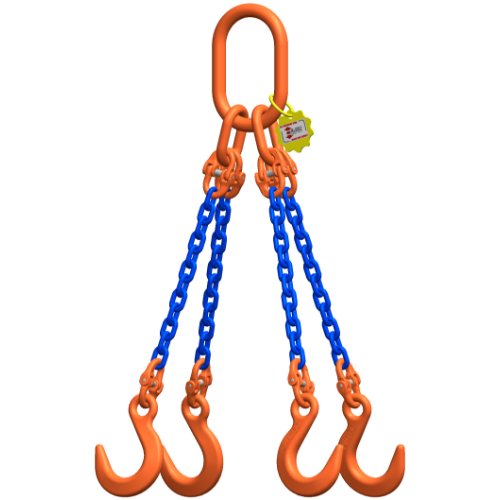 McBULL® 4-Strang-Kettengehänge nach EN 818-4 (mit höherer Tragfähigkeit), Güteklasse 10, mit Sondergüte-Kette, 7 mm, Grundpreis 1 Meter Nutzlänge, Tragfähigkeit 0-45°=4000 kg / 45-60°=2950 kg,oben mit Sonder-Aufhängering (340x180mm) und am Ende mit Giessereihaken mit Öse - ACHTUNG: Dies ist der Artikel für eine Nutzlänge von 1 Meter. Bei Bedarf von einer anderen Nutzlänge muss der Artikel -HX47SLMEHR- je weiteren Meter dazubestellt werden. Falls eine Verkürzung benötigt wird, muss der Artikel -HX47SLVKKS, HX47SLVKHG oder HX47SLVKHÖ- je Verkürzungseinheit dazubestellt werden.