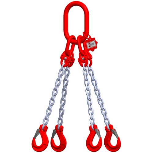 McBULL® 4-Strang-Kettengehänge nach EN 818-4, Güteklasse 8, mit galvanisch verzinkter Kette, 8 mm, Grundpreis 1 Meter Nutzlänge, Tragfähigkeit 0-45°=4250 kg / 45-60°=3000 kg,oben mit Standard-Aufhängering und am Ende mit Gabelkopf-Lasthaken - ACHTUNG: Dies ist der Artikel für eine Nutzlänge von 1 Meter. Bei Bedarf von einer anderen Nutzlänge muss der Artikel -H48SLMEHR"GV"- je weiteren Meter dazubestellt werden. Falls eine Verkürzung benötigt wird, muss der Artikel -H48SLVKKS"GV", H48SLVKHG"GV" oder H48SLVKHÖ"GV"- je Verkürzungseinheit dazubestellt werden.
