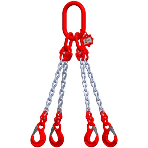 McBULL® 4-Strang-Kettengehänge nach EN 818-4, Güteklasse 8, mit galvanisch verzinkter Kette, 8 mm, Grundpreis 1 Meter Nutzlänge, Tragfähigkeit 0-45°=4250 kg / 45-60°=3000 kg,oben mit Standard-Aufhängering und am Ende mit Ösenlasthaken - ACHTUNG: Dies ist der Artikel für eine Nutzlänge von 1 Meter. Bei Bedarf von einer anderen Nutzlänge muss der Artikel -H48SLMEHR"GV"- je weiteren Meter dazubestellt werden. Falls eine Verkürzung benötigt wird, muss der Artikel -H48SLVKKS"GV", H48SLVKHG"GV" oder H48SLVKHÖ"GV"- je Verkürzungseinheit dazubestellt werden.