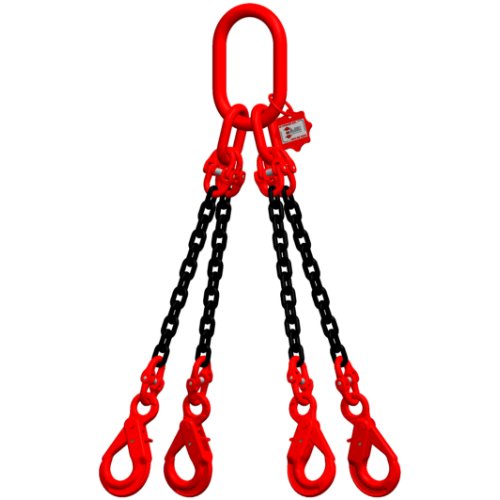 McBULL® 4-Strang-Kettengehänge nach EN 818-4, Güteklasse 8, mit schwarzer Kette, 8 mm, Grundpreis 1 Meter Nutzlänge, Tragfähigkeit 0-45°=4250 kg / 45-60°=3000 kg,oben mit Sonder-Aufhängering (260x140mm) und am Ende mit Self-Locking-Haken mit Öse - ACHTUNG: Dies ist der Artikel für eine Nutzlänge von 1 Meter. Bei Bedarf von einer anderen Nutzlänge muss der Artikel -H48SLMEHR- je weiteren Meter dazubestellt werden. Falls eine Verkürzung benötigt wird, muss der Artikel -H48SLVKKS, H48SLVKHG oder H48SLVKHÖ- je Verkürzungseinheit dazubestellt werden.