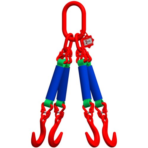 McBULL® 4-Strang-Rundschlingengehänge nach EN 1492-2, Grundpreis 1 Meter Nutzlänge, Tragfähigkeit 0-45°=6300 kg / 45-60°=4500 kg, oben mit Standard-Aufhängering und am Ende mit Giessereihaken mit Öse - ACHTUNG: Dies ist der Artikel für eine Nutzlänge von 1 Meter. Bei Bedarf von einer anderen Nutzlänge muss der Artikel -RSG43000SLMEHR- je weiteren Meter dazubestellt werden