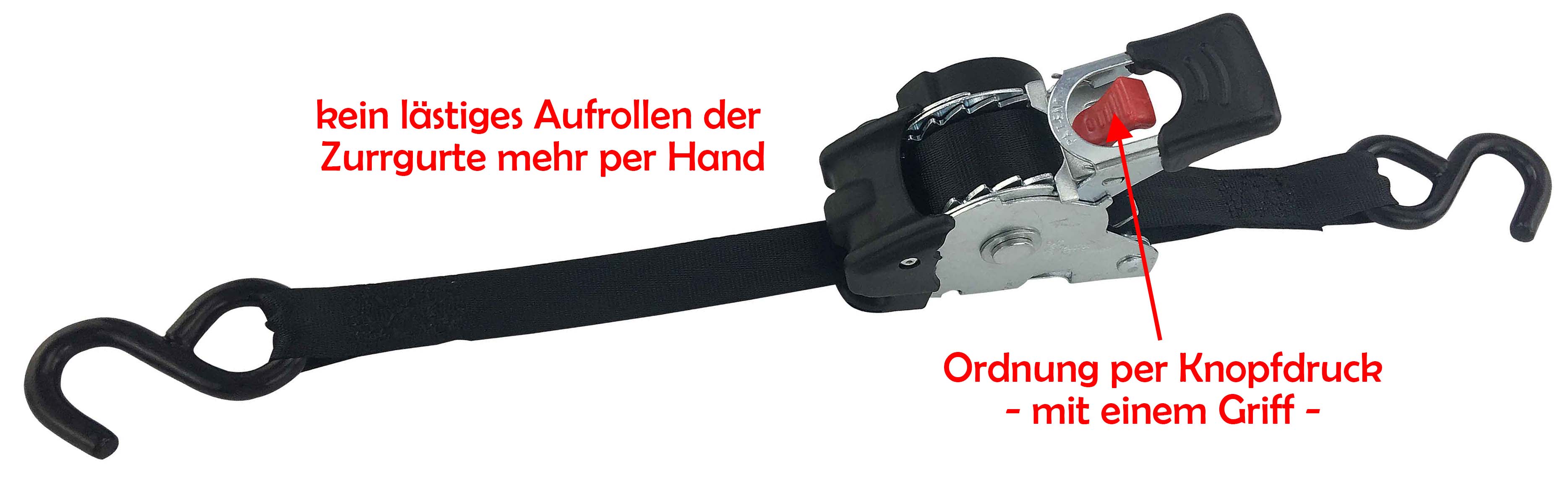 Zurrgurte, mit automatischem Aufrollmechanismus und S-Haken