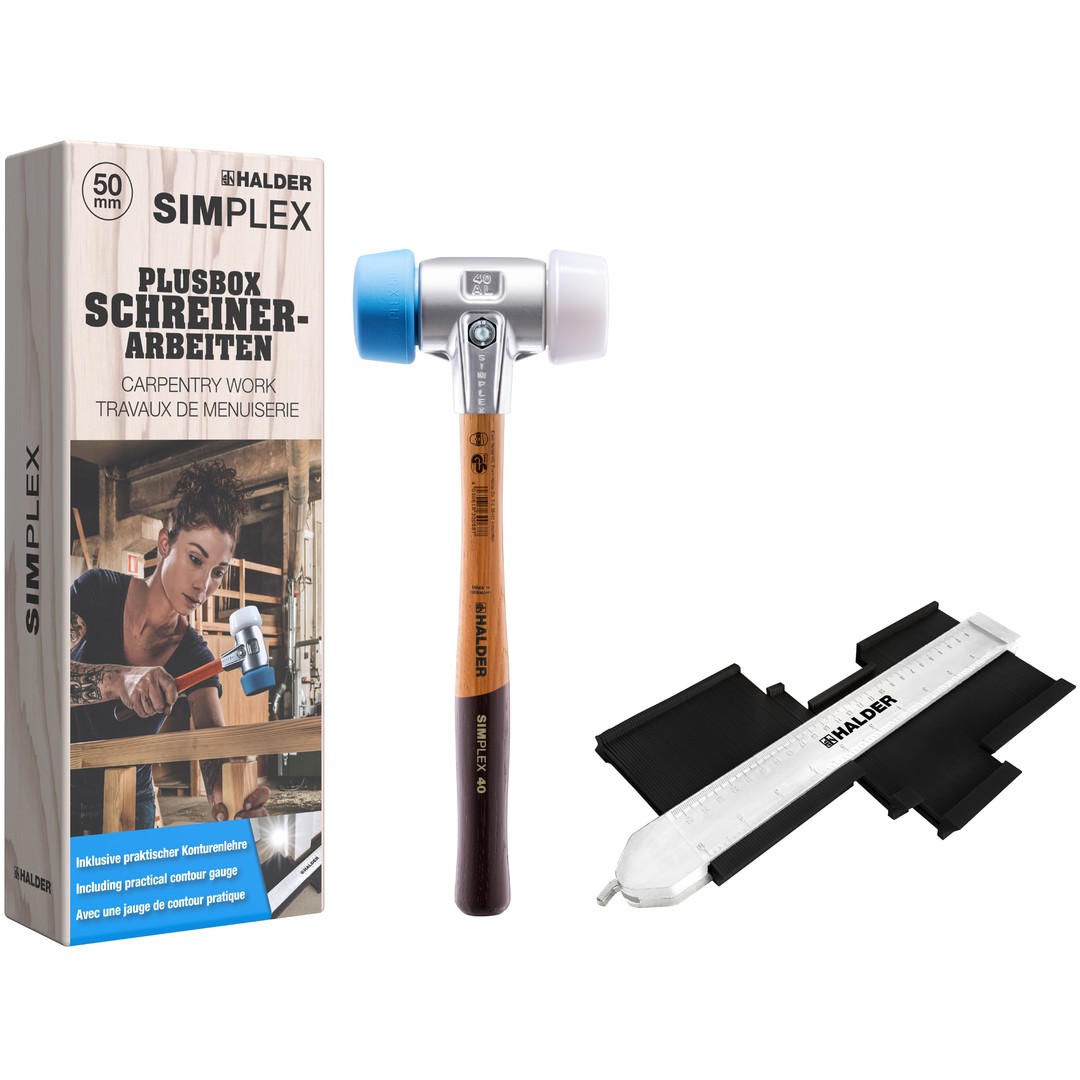 SIMPLEX-Plusbox Schreinerarbeiten, SIMPLEX-Schonhammer, TPE-soft / Superplastik plus Konturenlehre | 3117s004