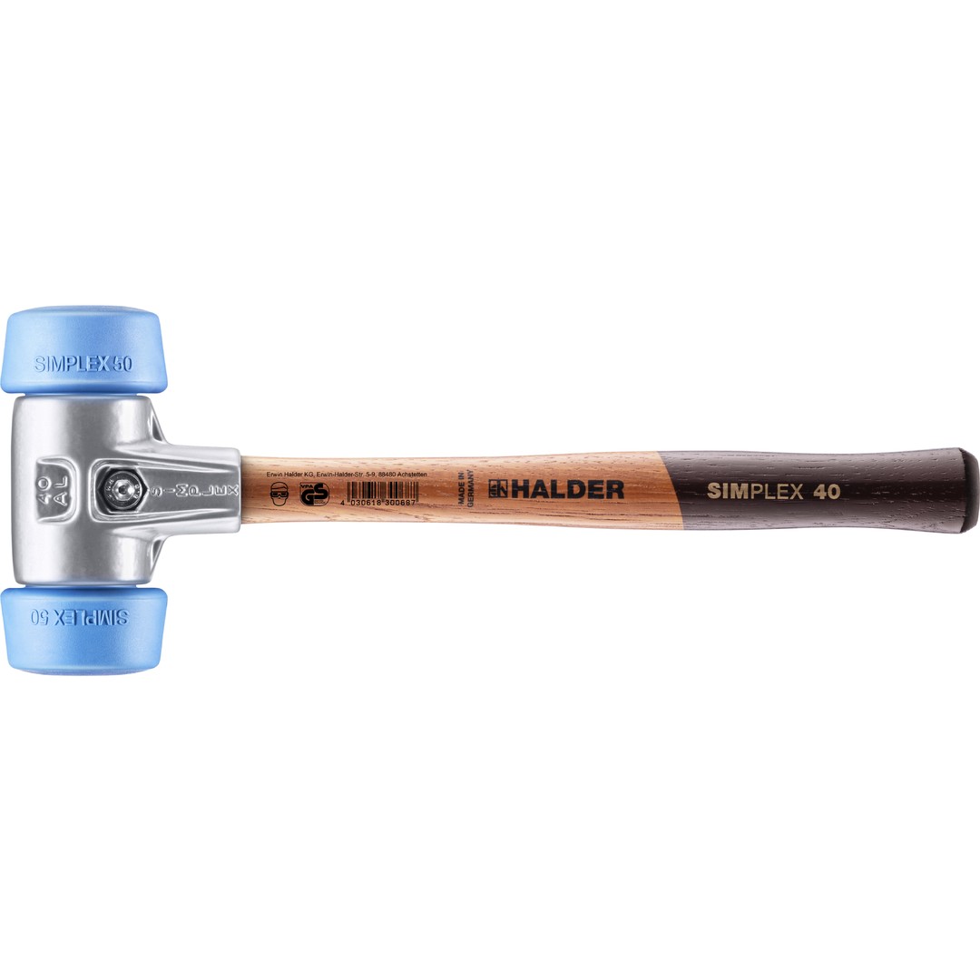 SIMPLEX-Schonhammer mit Aluminiumgehäuse und Holzstiel, Ø 50:40, TPE-soft