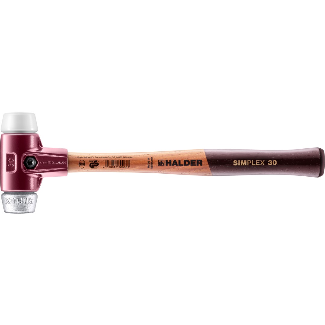 SIMPLEX-Schonhammer mit TE-Gehäuse und Holzstiel, Ø 30, Superplastik / Weichmetall