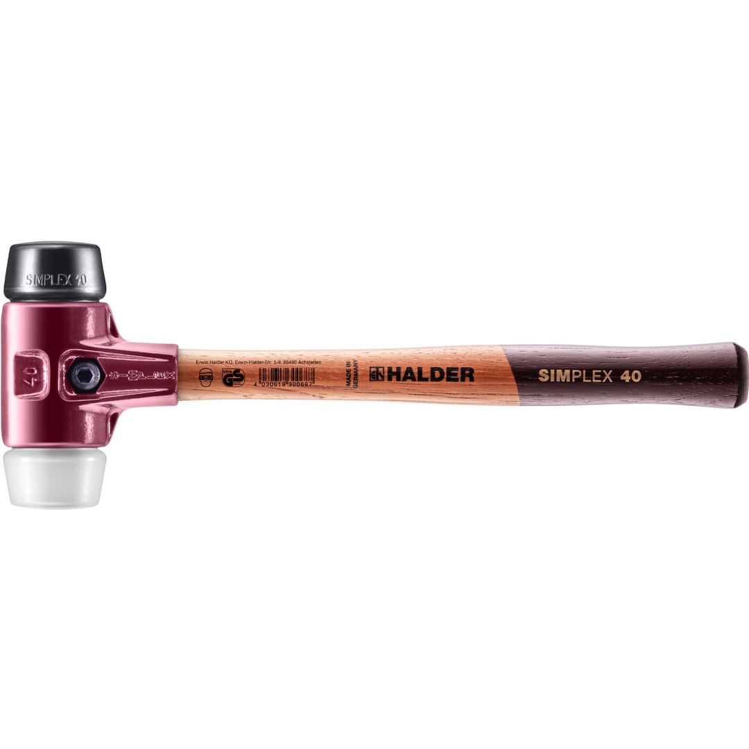 SIMPLEX-Schonhammer mit TE-Gehäuse und Holzstiel, Ø 40, Gummikomposition / Superplastik