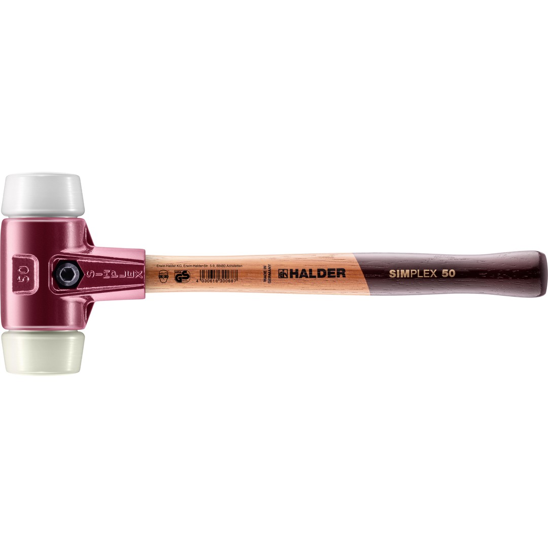 SIMPLEX-Schonhammer mit TE-Gehäuse und Holzstiel, Ø 50, Superplastik / Nylon