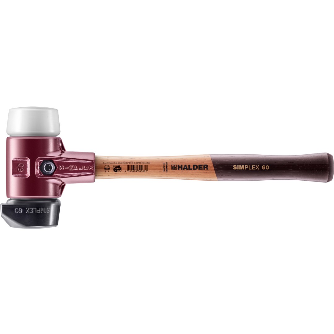 SIMPLEX-Schonhammer mit TE-Gehäuse und Holzstiel, Ø 60, Gummikomposition mit Standfuss / Superplastik