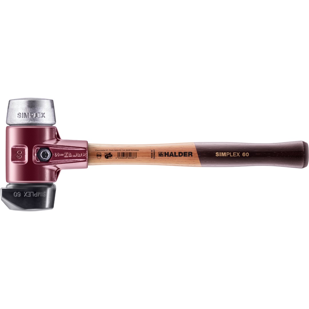 SIMPLEX-Schonhammer mit TE-Gehäuse und Holzstiel, Ø 60, Gummikomposition mit Standfuss / Weichmetall
