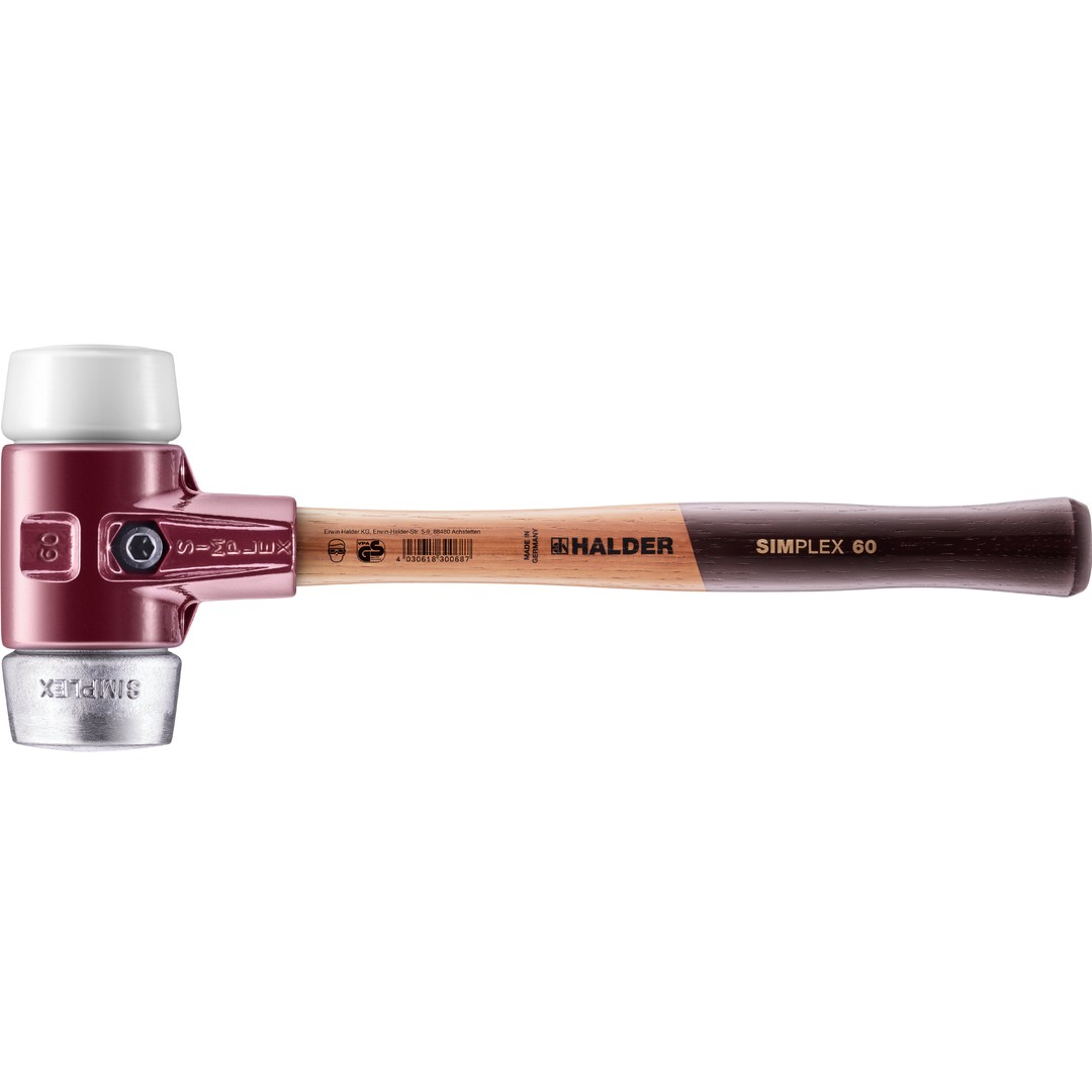 SIMPLEX-Schonhammer mit TE-Gehäuse und Holzstiel, Ø 60, Superplastik / Weichmetall