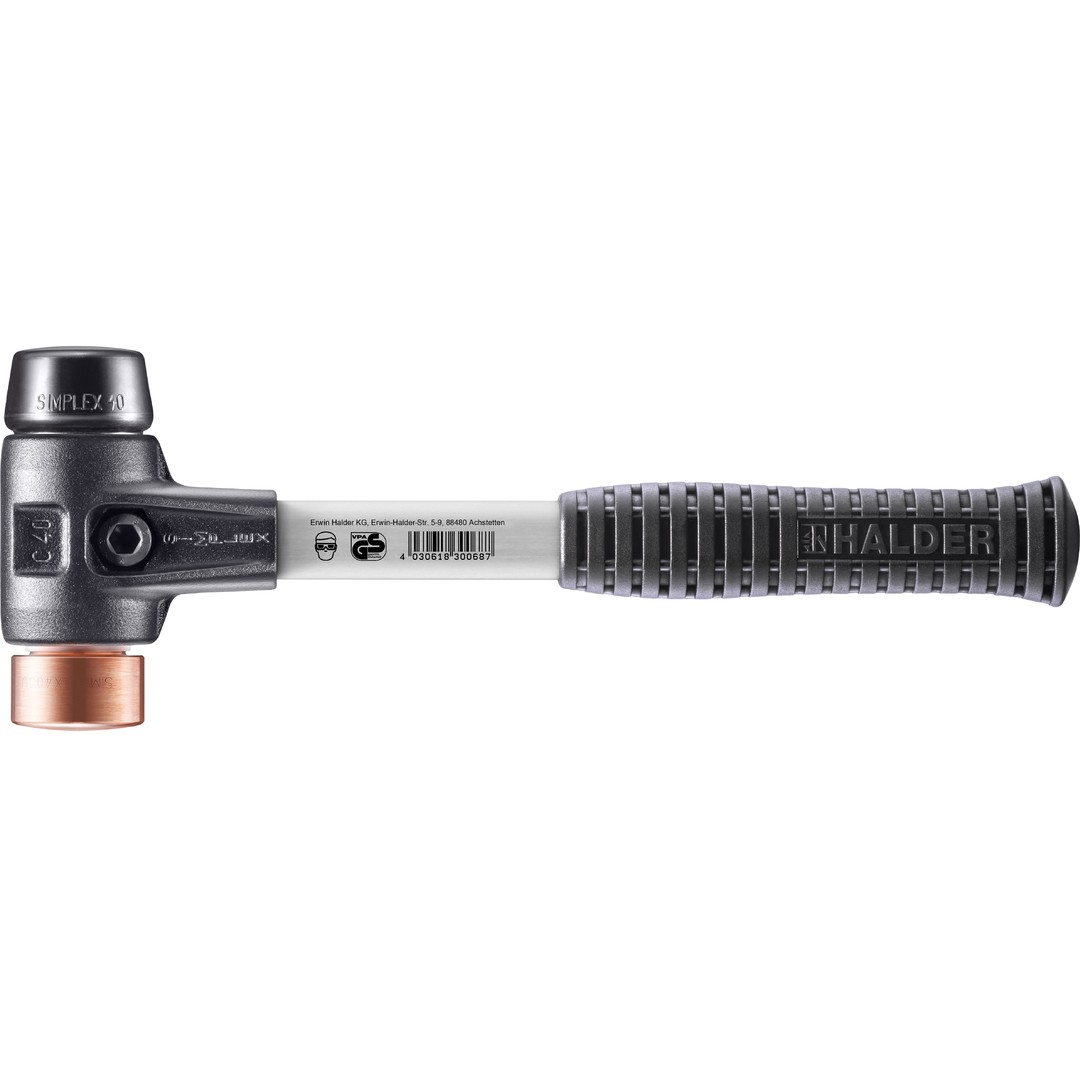 SIMPLEX-Schonhammer mit verstärktem TE-Gehäuse und Fiberglasstiel, Ø 40, Gummikomposition / Kupfer