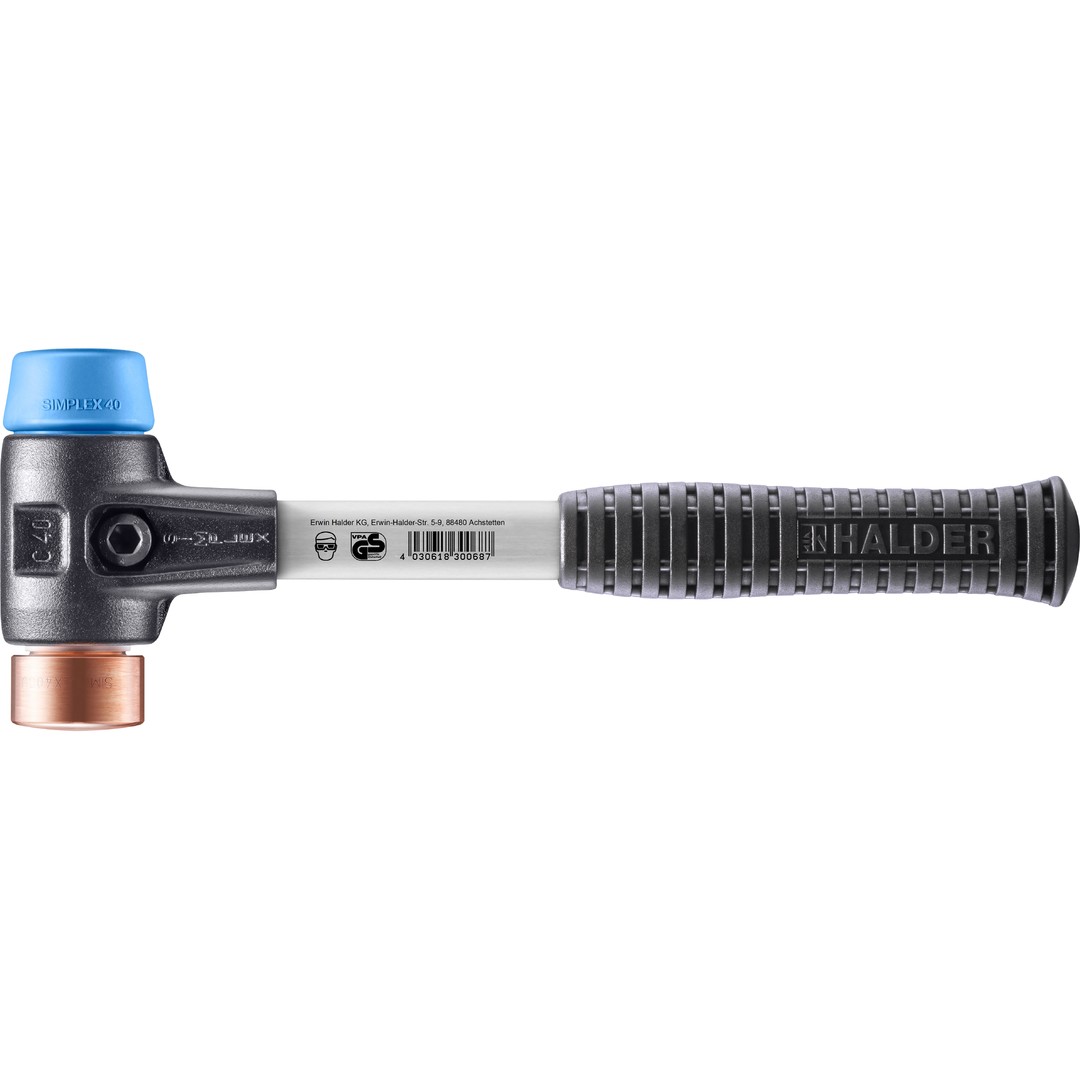 SIMPLEX-Schonhammer mit verstärktem TE-Gehäuse und Fiberglasstiel, Ø 40, TPE-soft / Kupfer