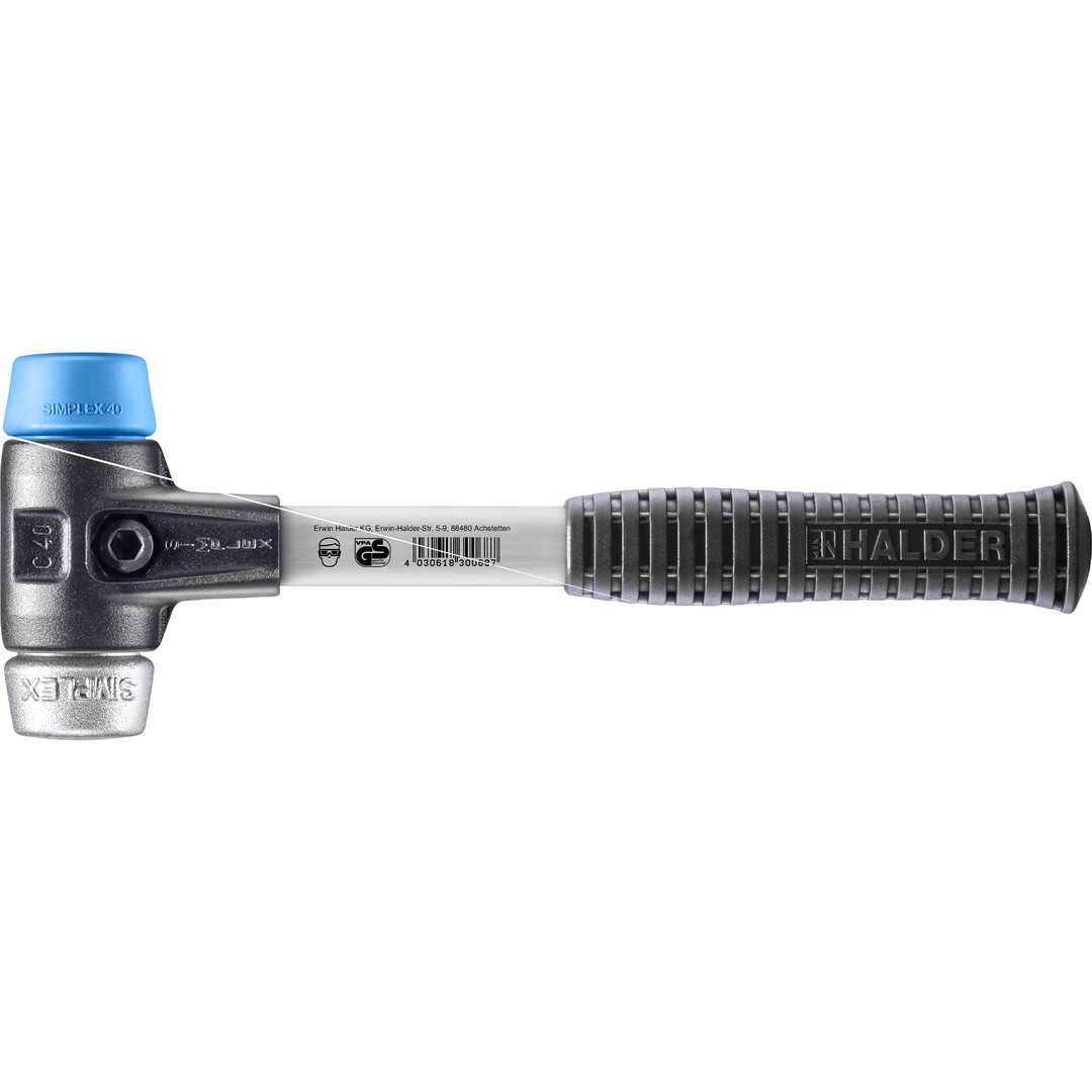 SIMPLEX-Schonhammer mit verstärktem TE-Gehäuse und Fiberglasstiel, Ø 40, TPE-soft / Weichmetall