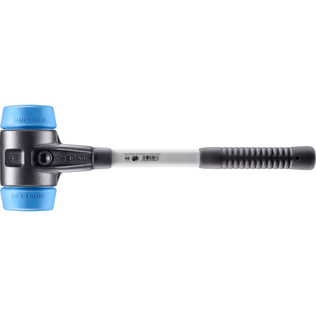 SIMPLEX-Schonhammer mit verstärktem TE-Gehäuse und Fiberglasstiel, Ø 80, TPE-soft