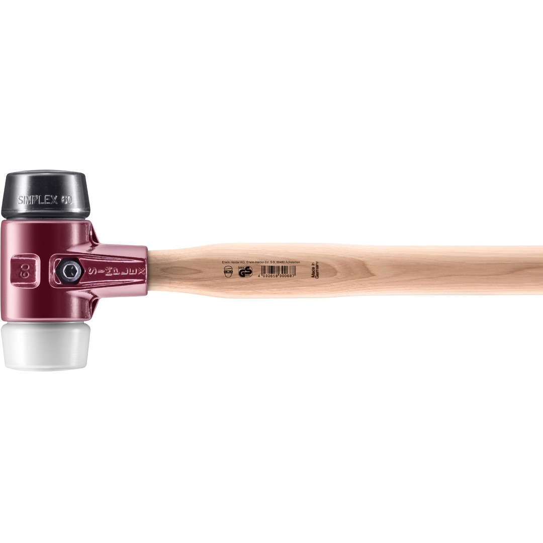SIMPLEX-Vorschlaghammer mit TE-Gehäuse und Holzstiel, Ø 60 / Stiel 700 mm Gummikomposition / Superplastik