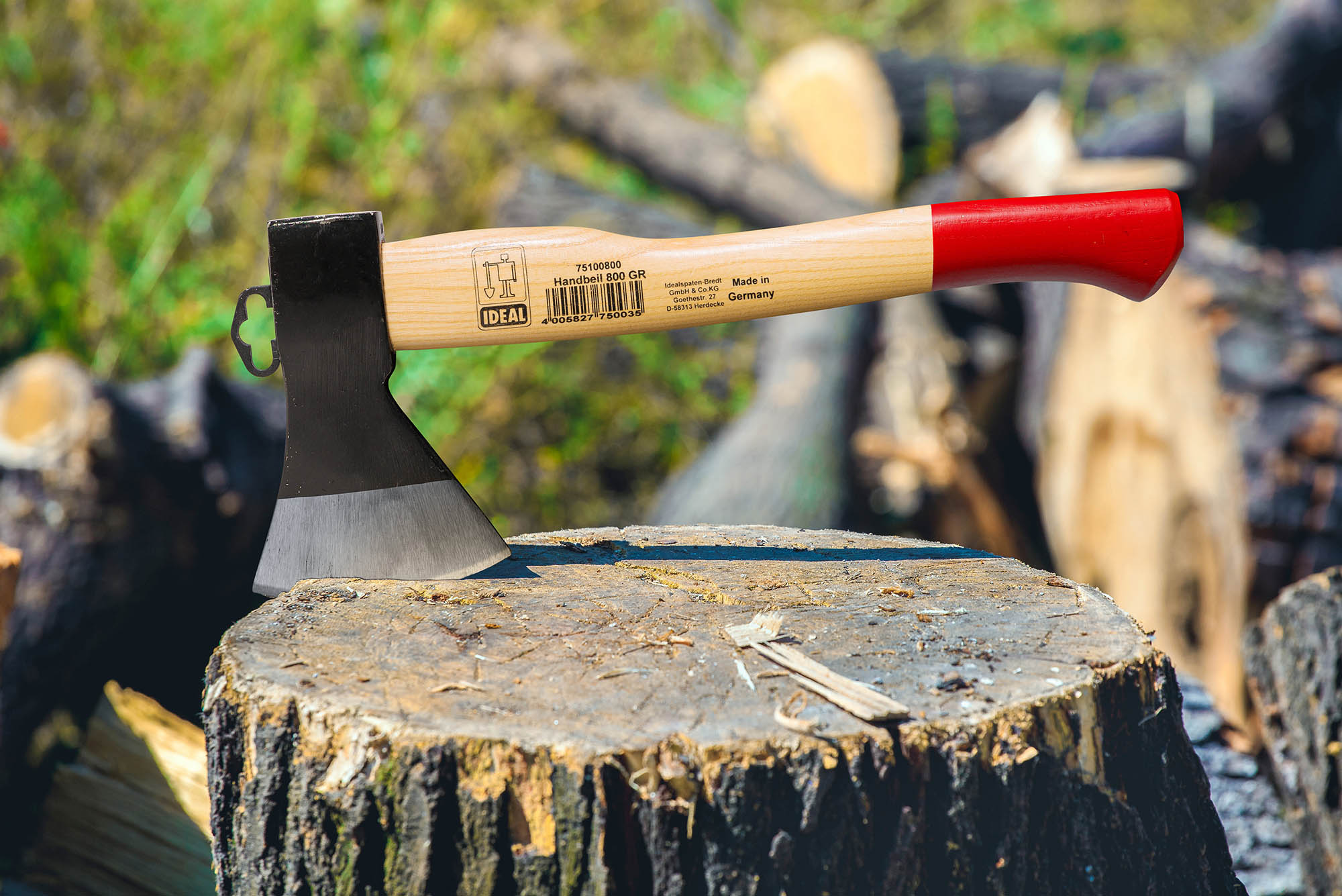 IDEAL-Handbeil nach DIN, Schneide geschliffen und poliert, Schneidschutz - Eschen-Kuhfuß