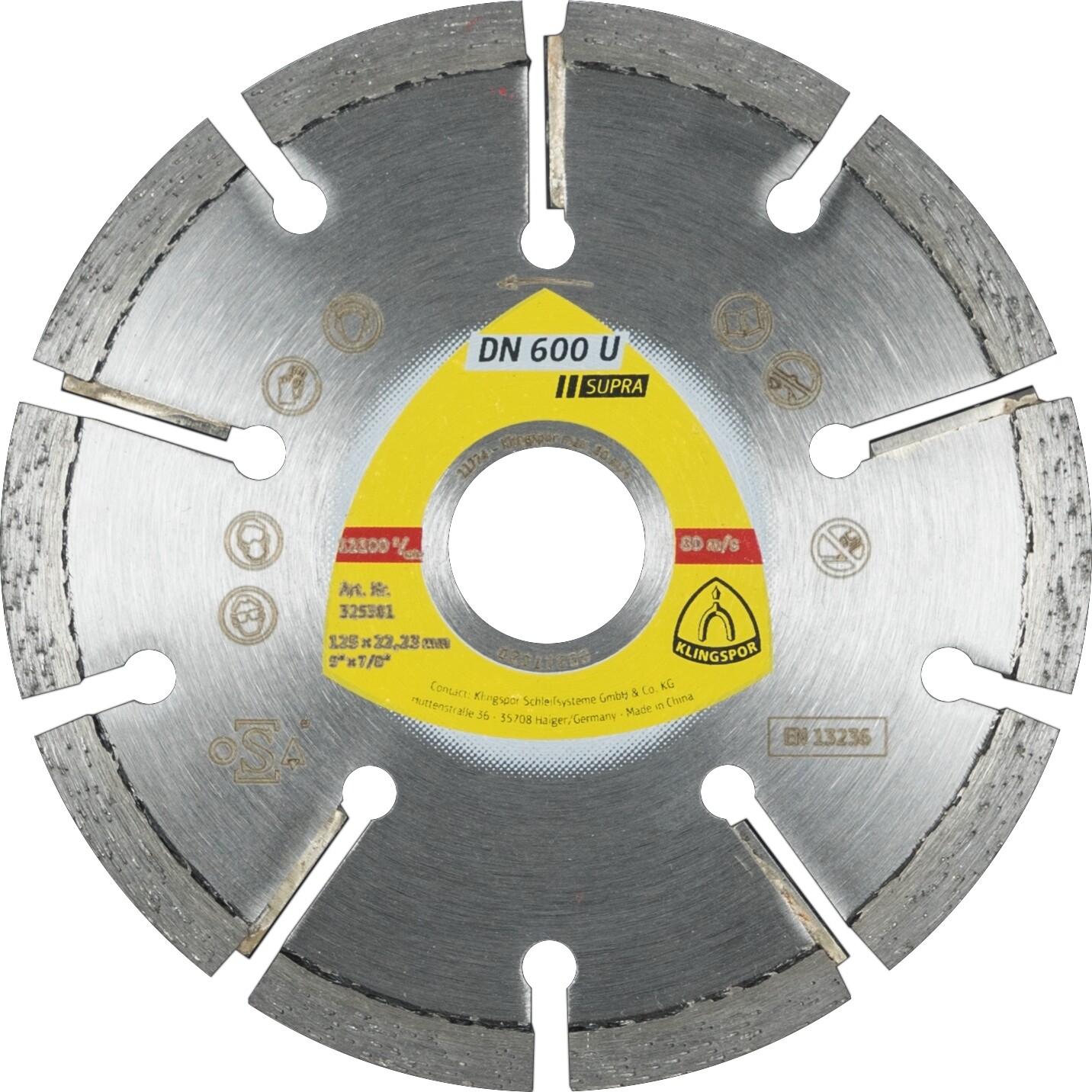 DN 600 U Diamanttrennscheiben115 x 8 x 22,23 mm 9 Segmente 32 x 8 x 7 mmStandardverzahnung ist verfügbar zum Kauf in Stufen von 1